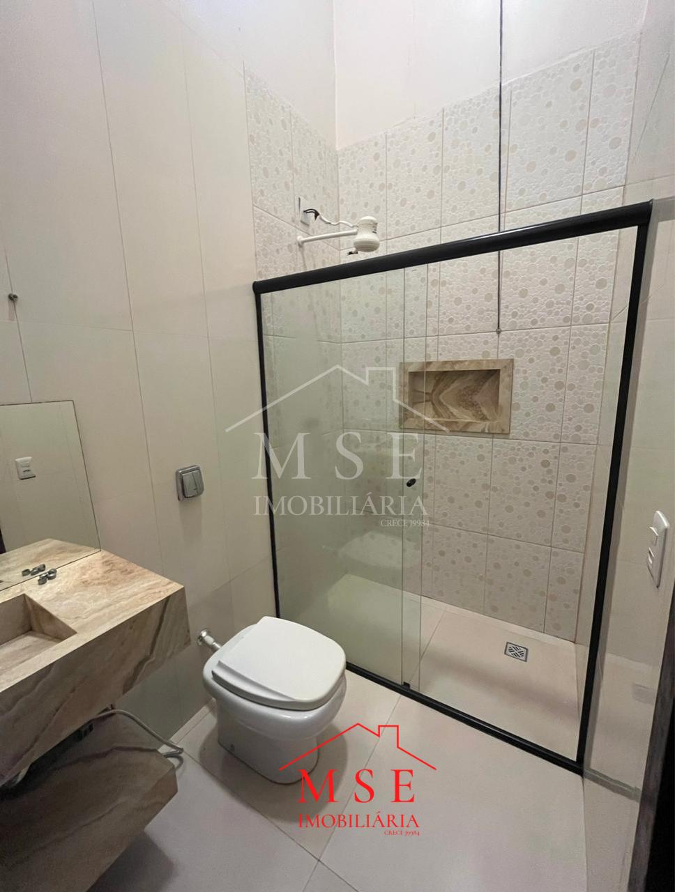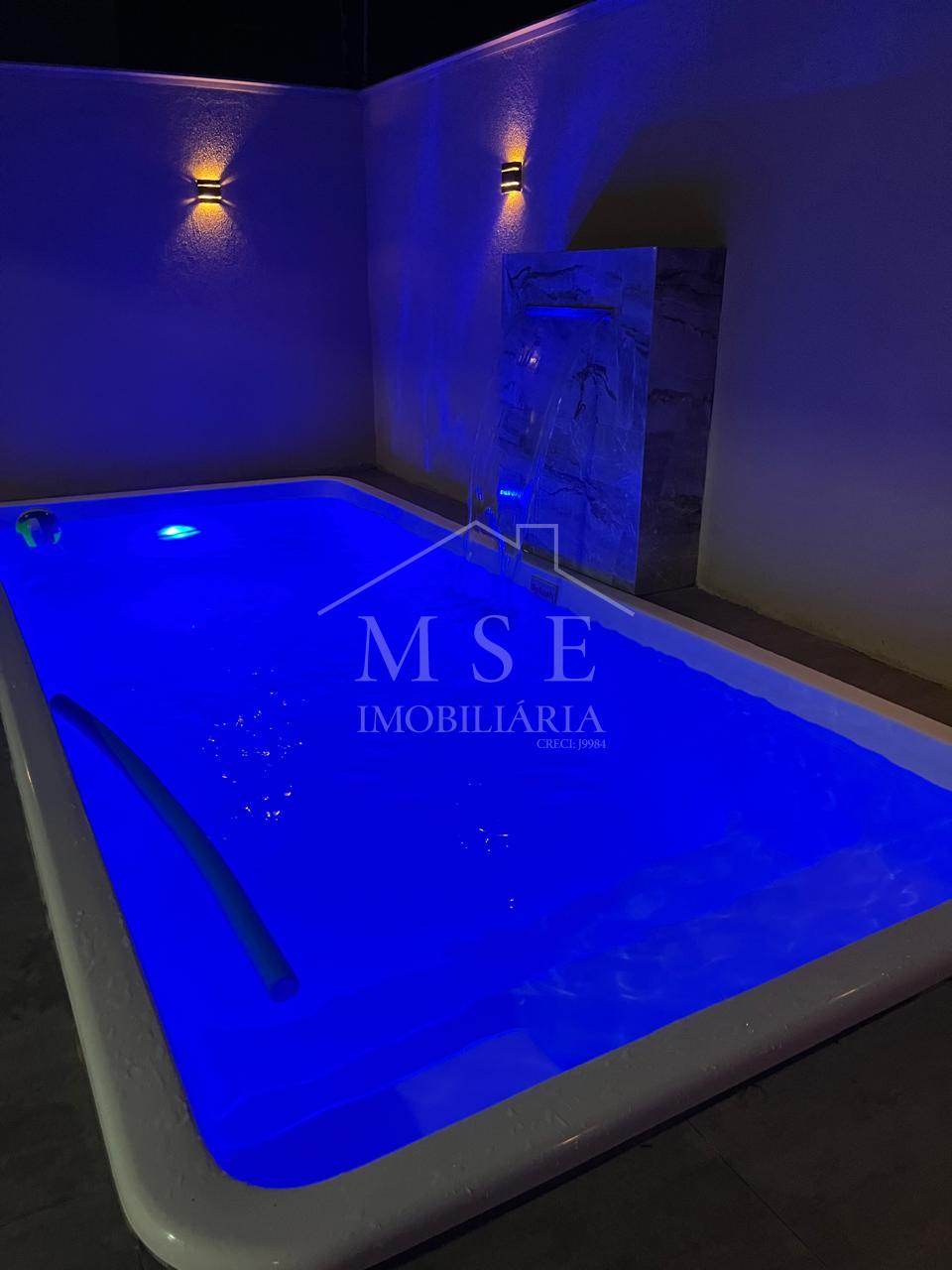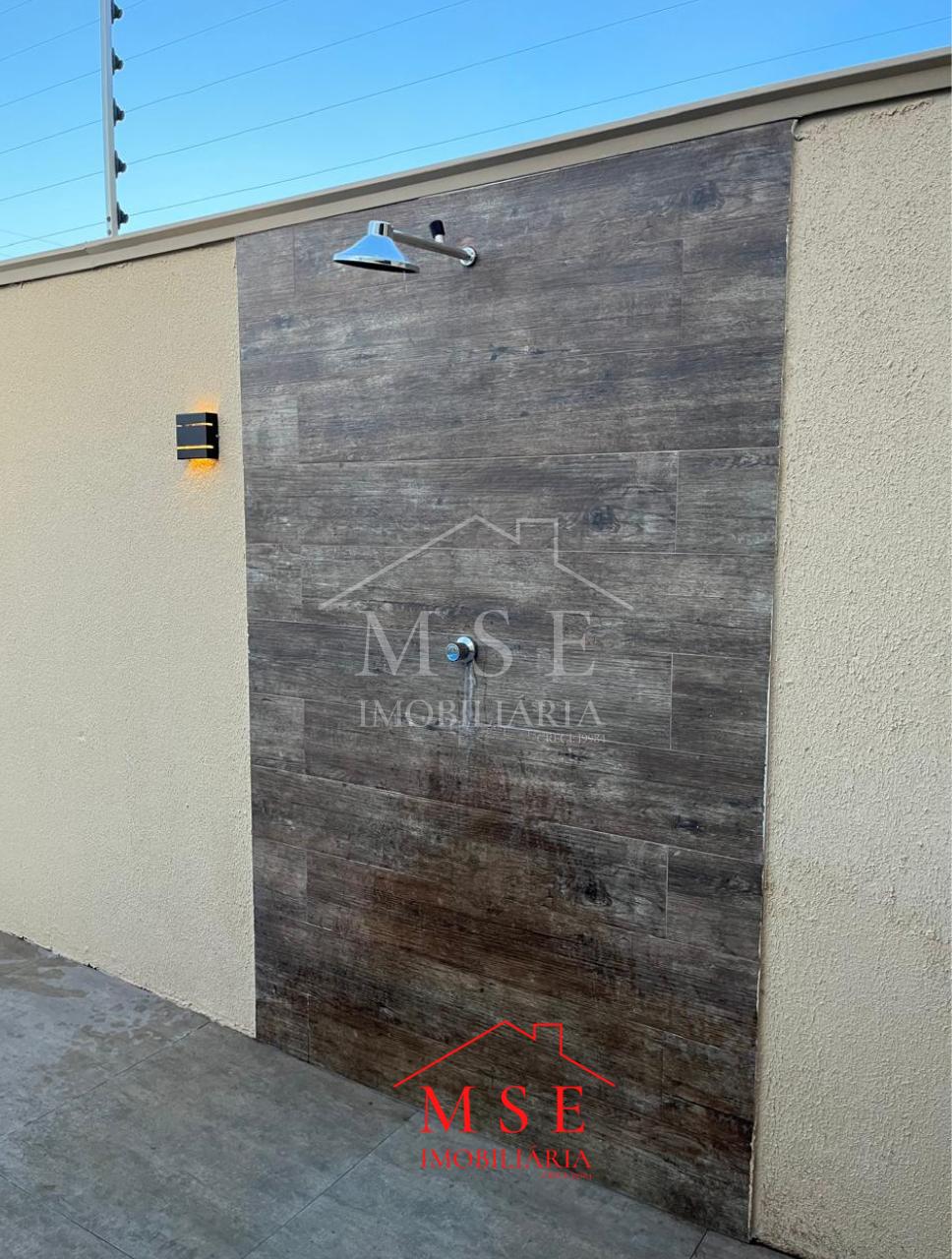 2 suítes, mais um quarto, 1 banheiro, sala, cozinha, área gourmet com churrasqueira, lavanderia fechada, quintal com piscina cascata chuveiro e espera pra aquecedor, estrutura metálica pra placa solar, garagem pra dois veículos (1 descoberto), alarme, cerca elétrica, portao eletrônico e instalação pra colocar interfone, forro em gesso, porcelanato.